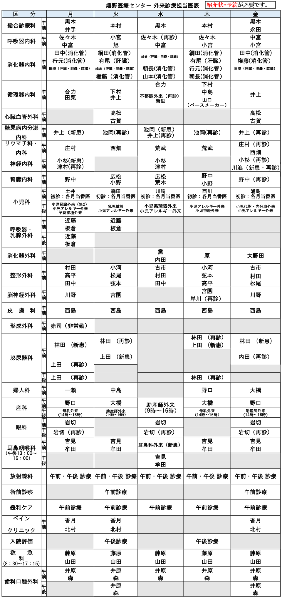 ご紹介については月曜日でお願いいたします。 救急の場合はこの限りではありません。 |